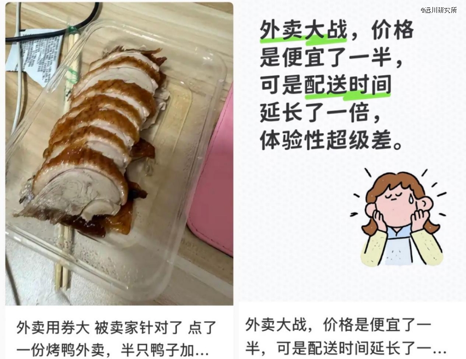 而市场的供需两头,持久由一方让利,必然是不成持续的。这些被压缩的利润积累下去,最终很难不殃及消费者。社交平台上,已有不少消费者反馈,看似薅到羊毛,实则收到的餐品偷工减料,并且当骑手压力过载时,配送时间翻倍或是不送货上门的现象也常有。