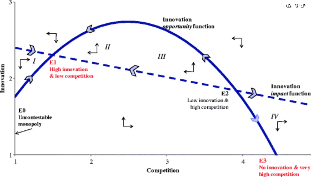 2025年的诺贝尔经济学家获得者阿吉翁和豪伊特,用一个“倒U型曲线”来注释合作对立异的影响,核论是:适度合作的,才是最适合立异的。